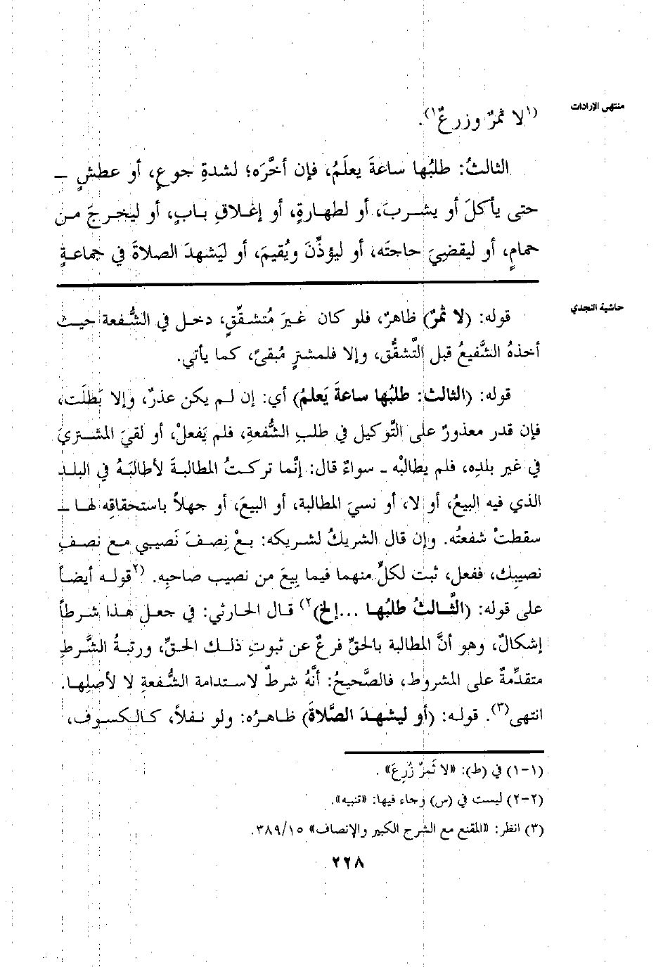 الثَّالِثُ: طَلَبُهَا سَاعَةَ يَعْلَمُ فَإِنْ أَخَّرَهُ لِشِدَّةِ جُوعٍ أَوْ عَطَشٍ حَتَّى يَأْكُلَ أَوْ يَشْرَبَ أَوْ لِطَهَارَةٍ أَوْ إغْلَاقِ بَابٍ أَوْ لِيَخْرُجَ مِنْ حَمَّامٍ أَوْ لِيَقْضِيَ حَاجَتَهُ أَوْ لِيُؤَذِّنَ وَيُقِيمَ أَوْ لِيَشْهَدَ الصَّلَاةَ فِي جَمَاعَةٍ