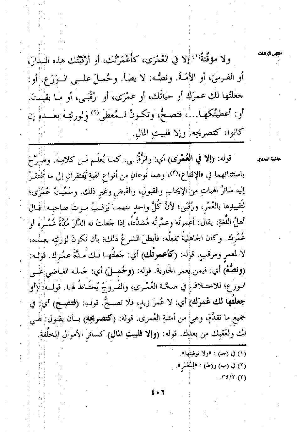 وإلا مؤقتة إلا في العمرى، كأعمرتك، أو أرقبتك هذه الدار، أو الفرس، أو الأمة. ونصه: لا يطأ. وحُمل على الورع. أو: جعلتُها لك عمرك أو حياتك، أو عمرى، أو رقبى، أو ما بقيت. أو: أعطيتكها .. ، فتصح، وتكون لمعطى ولورثته بعده إن كانوا، كتصريحه. وإلا فلبيت المال.