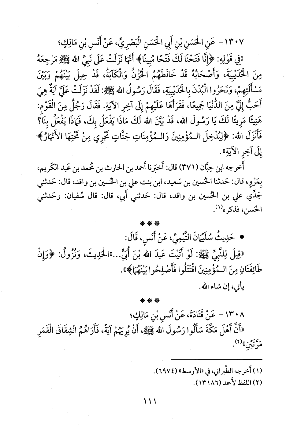 ١٣٠٨ - عن قتادة، عن أَنس بن مالك؛
