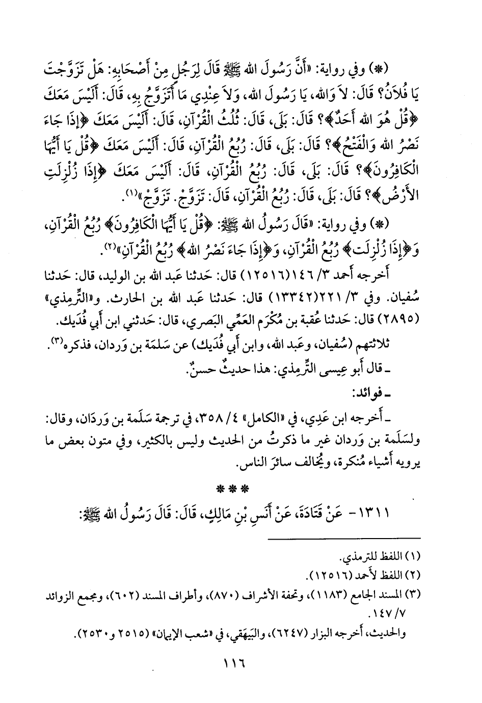 ١٣١١ - عن قتادة، عن أَنس بن مالك، قال: قال رسول الله صَلى الله عَليه وسَلم: