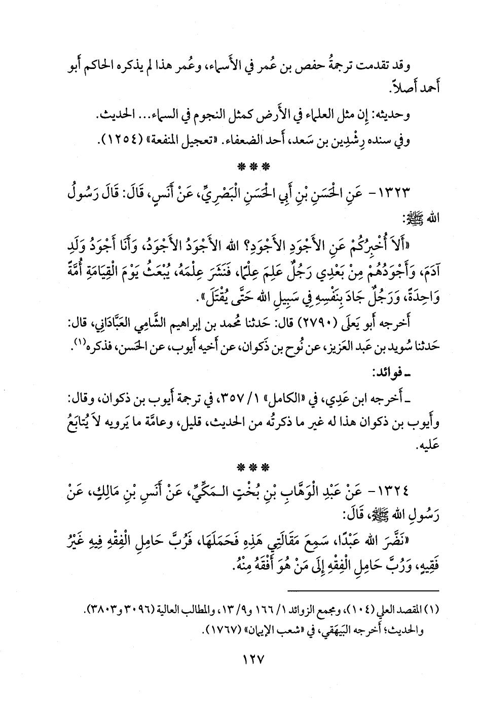 ١٣٢٣ - عن الحسن بن أبي الحسن البصري، عن أَنس، قال: قال رسول الله صَلى الله عَليه وسَلم: