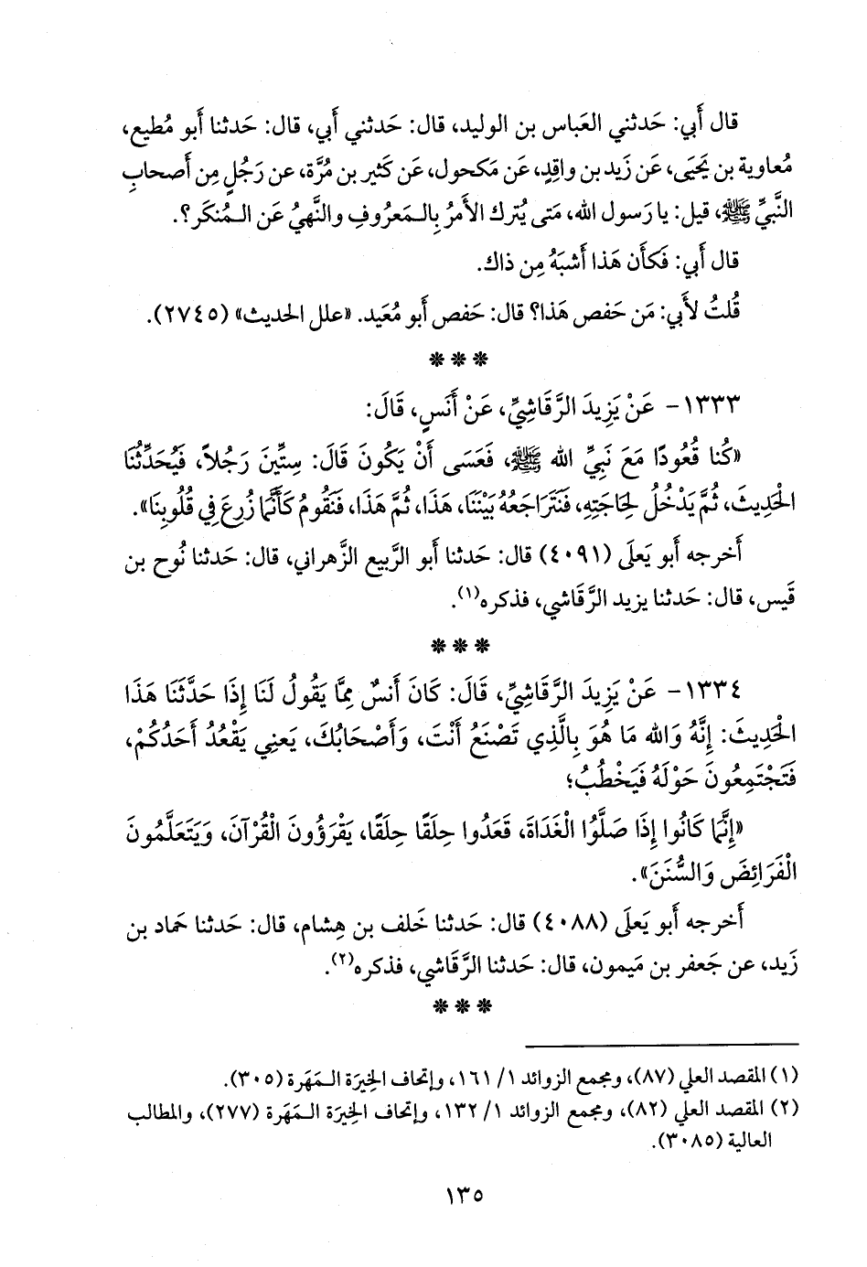 ١٣٣٤ - عن يزيد بن أَبَان الرَّقَاشي، قال: كان أَنس مما يقول لنا إذا حدثنا هذا الحديث: إنه والله ما هو بالذي تصنع أنت، وأصحابك، يعني يقعد أحدكم، فتجتمعون حوله فيخطب؛
