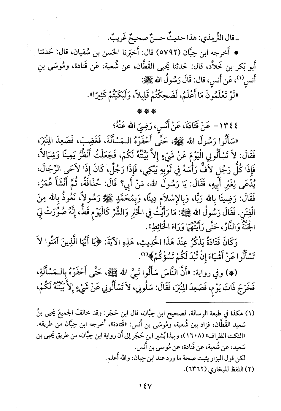 ١٣٤٤ - عن قتادة، عن أَنس، رضي الله عنه؛