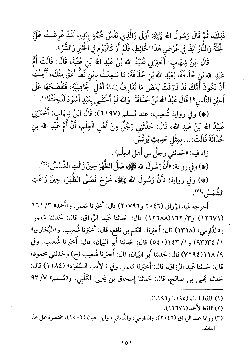 - وفي رواية شعيب، عند مسلم (٦١٩٧): قال ابن شهاب: أخبرني عُبيد الله بن عبد الله، قال: حدثني رجل من أهل العلم، أن أم عبد الله بن حذافة قالت: ... بمثل حديث يونس.