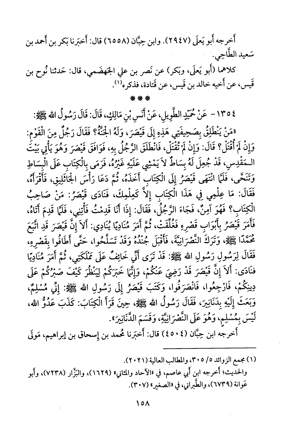 ١٣٥٤ - عن حميد الطويل، عن أَنس بن مالك، قال: قال رسول الله صَلى الله عَليه وسَلم: