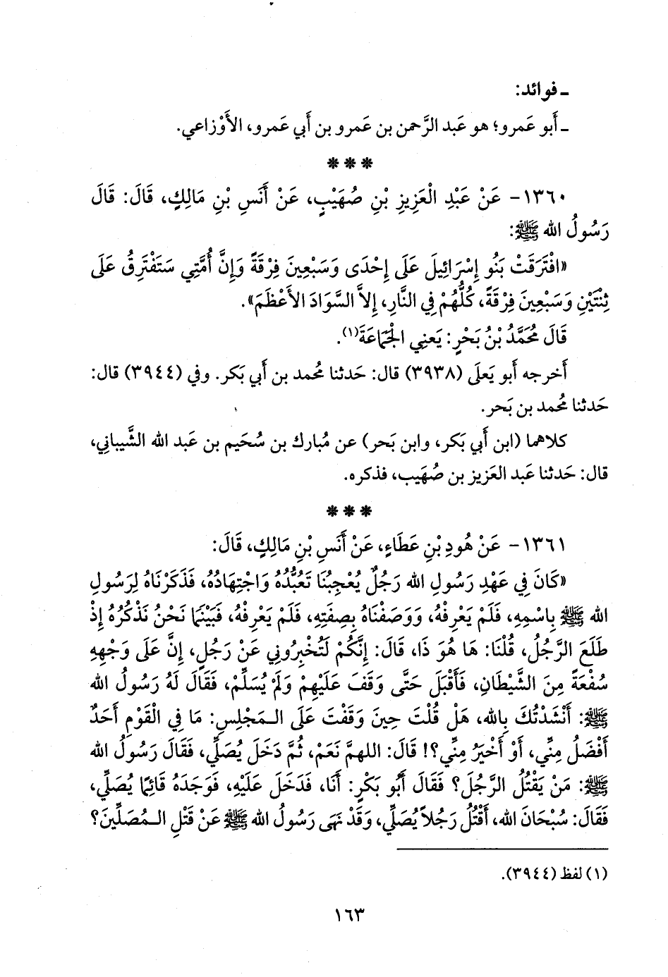 ١٣٦٠ - عن عبد العزيز بن صُهَيب، عن أَنس بن مالك، قال: قال رسول الله صَلى الله عَليه وسَلم: