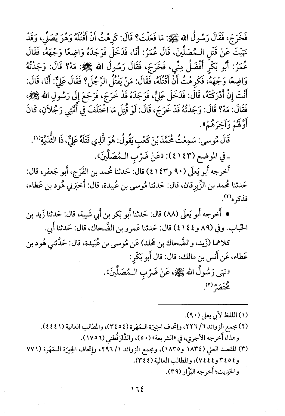 (¬٢) المقصد العَلي (١٨٣٤ و ١٨٣٥)، ومَجمَع الزوائد ١/ ٢٩٦، وإتحاف الخيرَة المَهَرة (٧٧١ و ٣٤٥٤ و ٧٤٤٤)، والمطالب العالية (٣٤٤).
