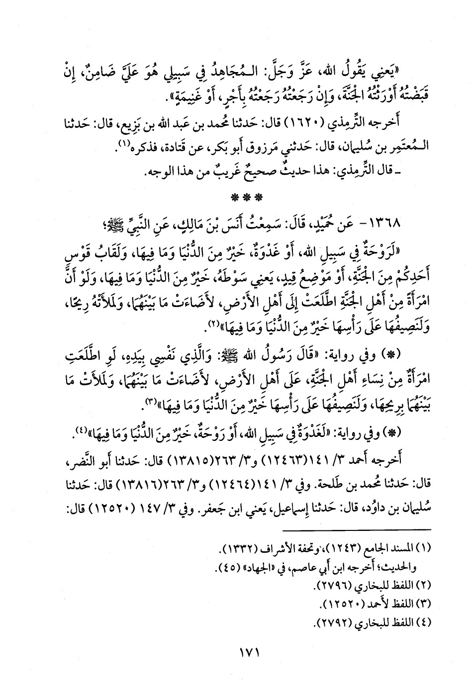 - وفي رواية: «لغدوة في سبيل الله، أو روحة، خير من الدنيا وما فيها» (¬٣).