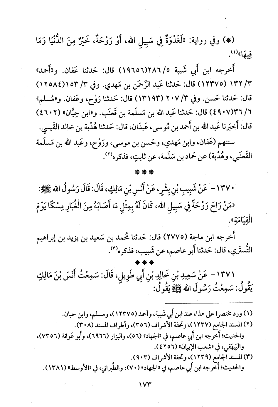 «من راح روحة في سبيل الله، كان له بمثل ما أصابه من الغبار مسكا يوم القيامة».