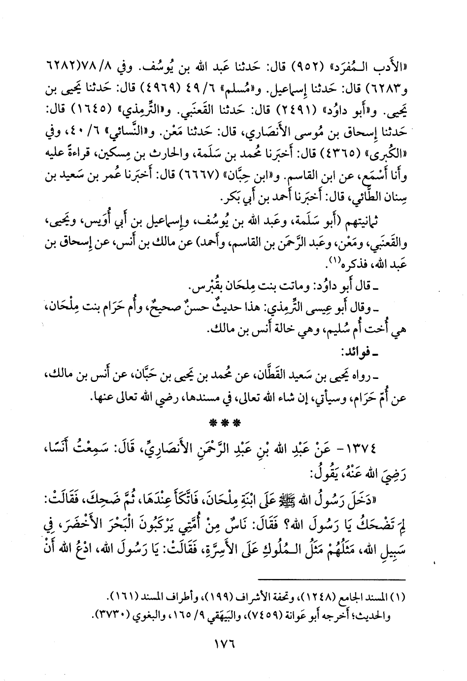 - رواه يحيى بن سعيد القطان، عن محمد بن يحيى بن حبان، عن أَنس بن مالك، عن أُم حَرَام، وسيأتي في مسندها، رضي الله تعالى عنها.