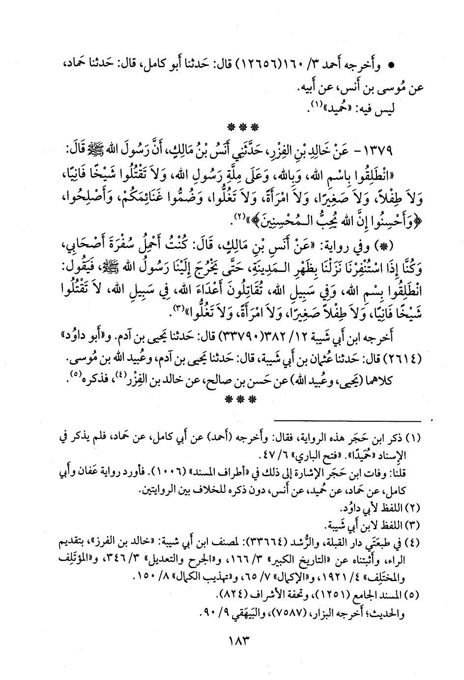 ١٣٧٩ - عن خالد بن الفزر، حدثني أَنس بن مالك، أن رسول الله صَلى الله عَليه وسَلم قال: