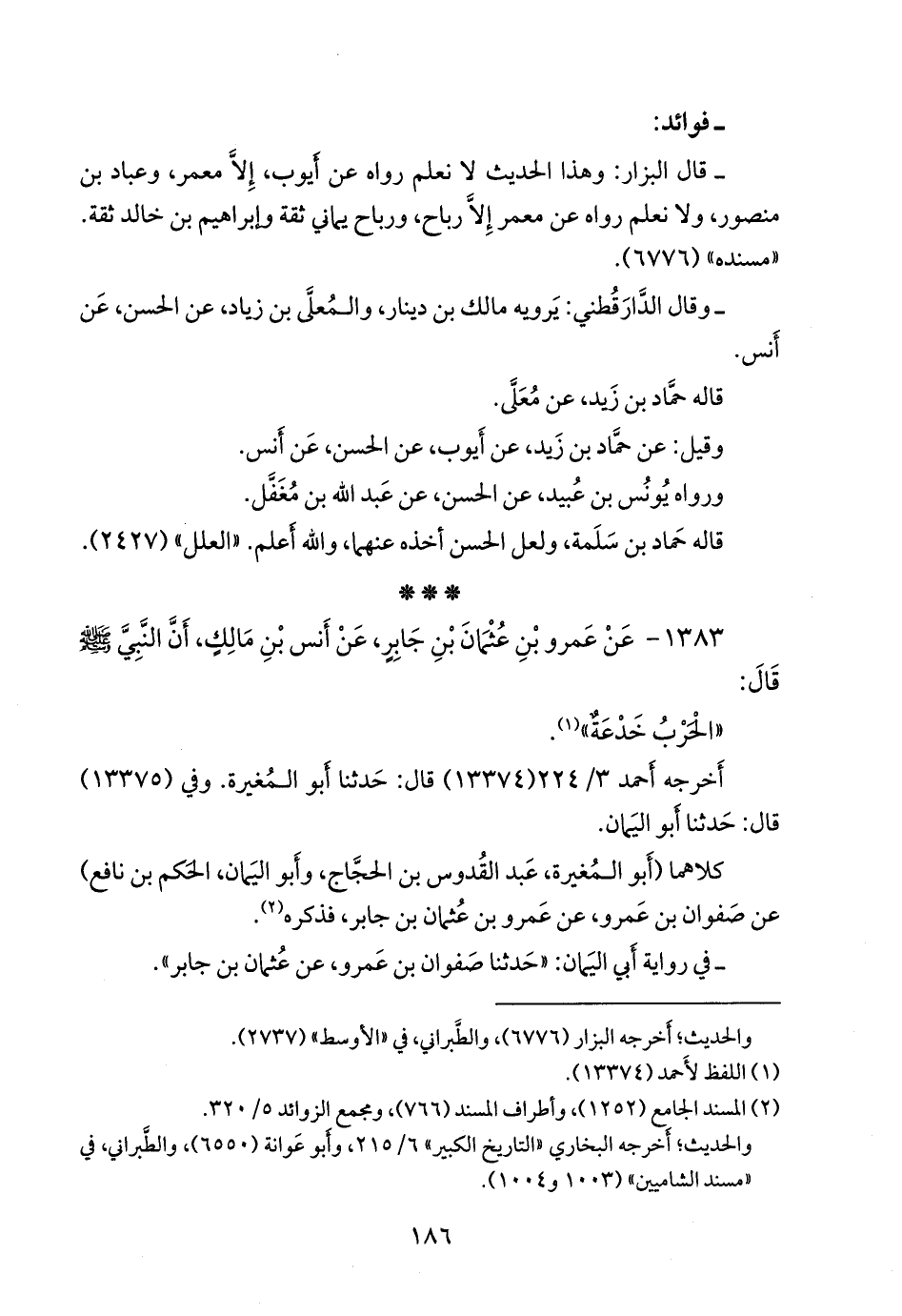 ١٣٨٣ - عن عَمرو بن عثمان بن جابر، عن أَنس بن مالك، أن النبي صَلى الله عَليه وسَلم قال: