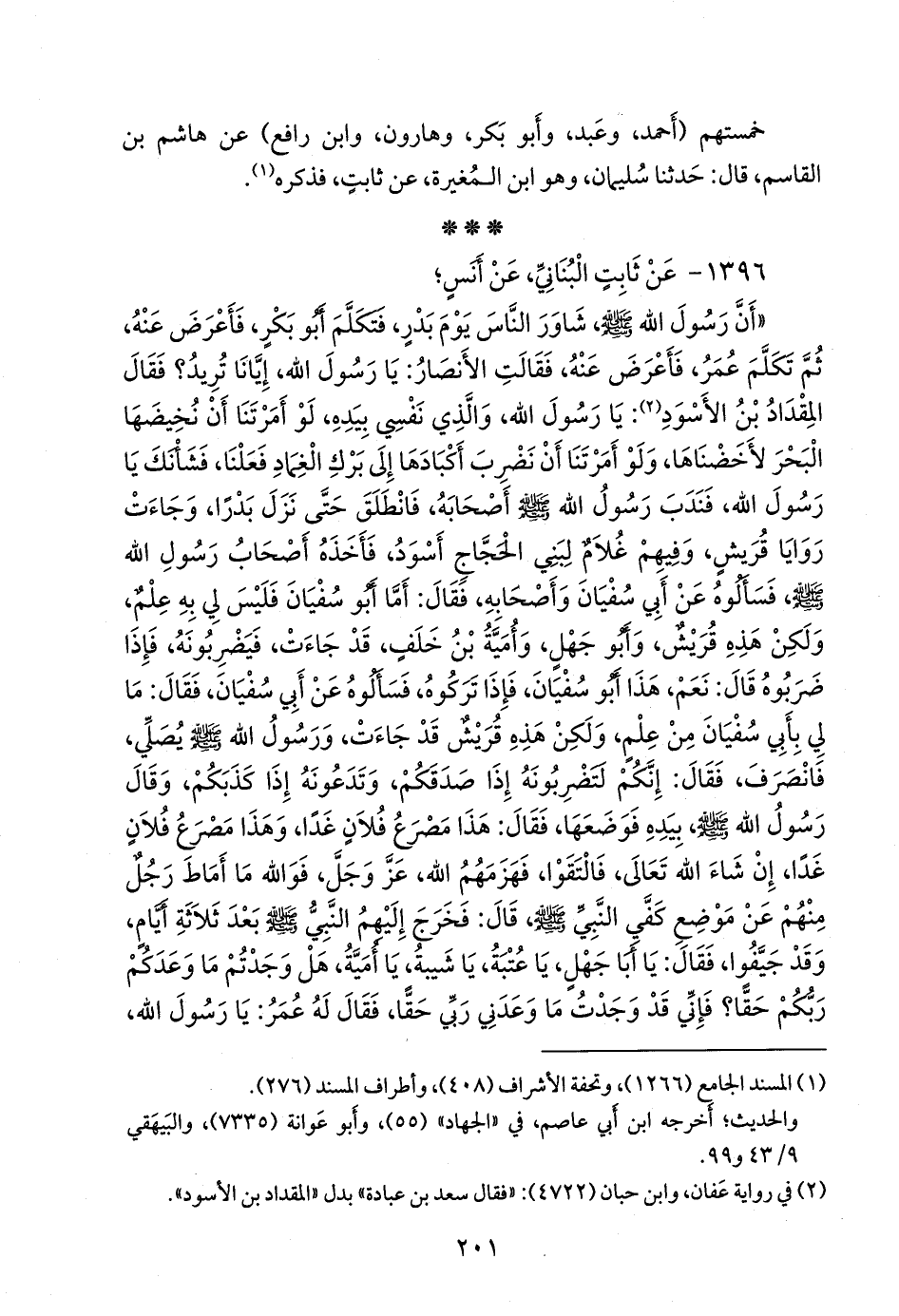 (¬١) في رواية عفان، وابن حبان (٤٧٢٢): «فقال سعد بن عبادة» بدل «المقداد بن الأسود».