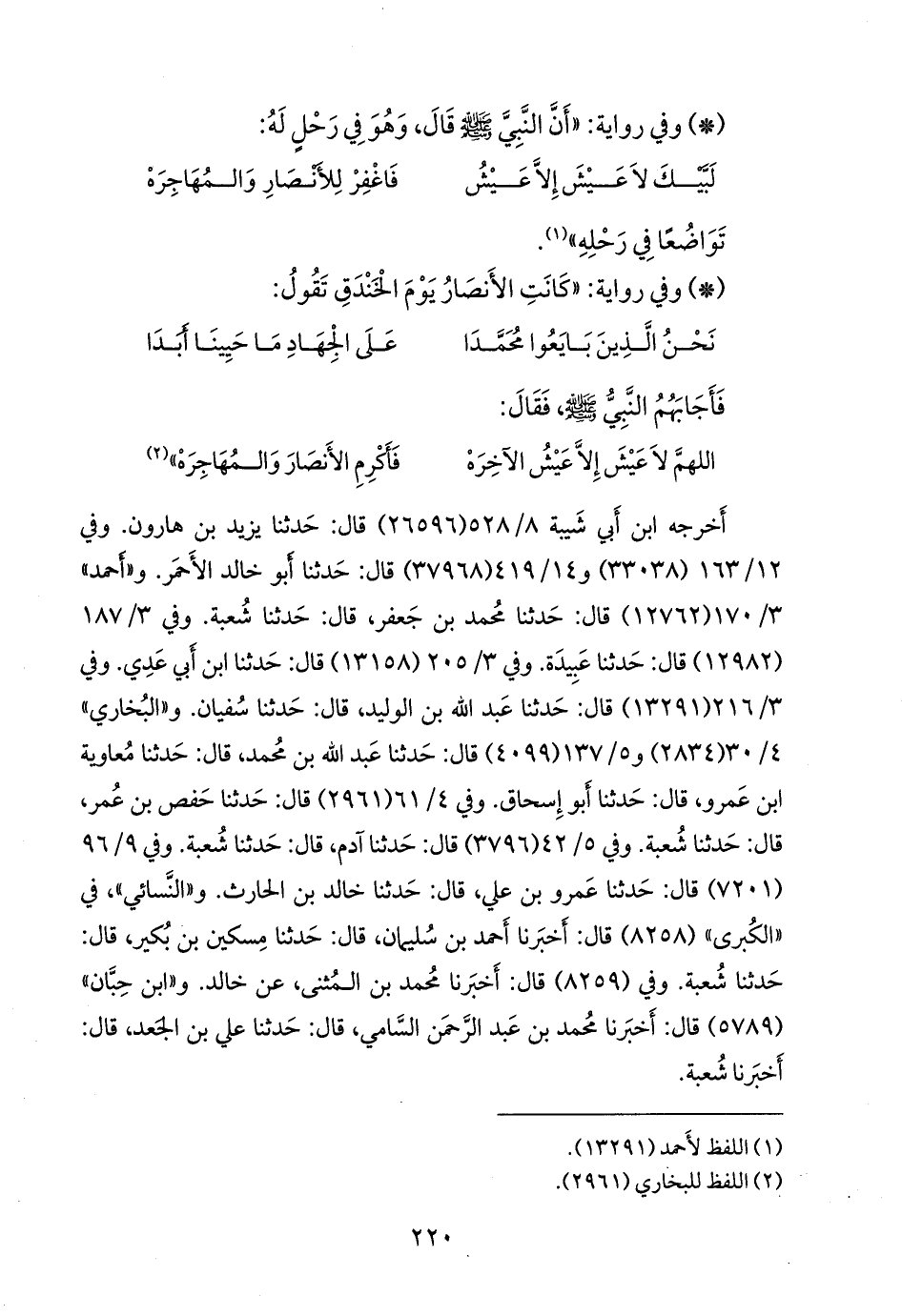 اللهم لا عيش إلا عيش الآخره ... فأكرم الأنصار والمهاجره» (¬١).