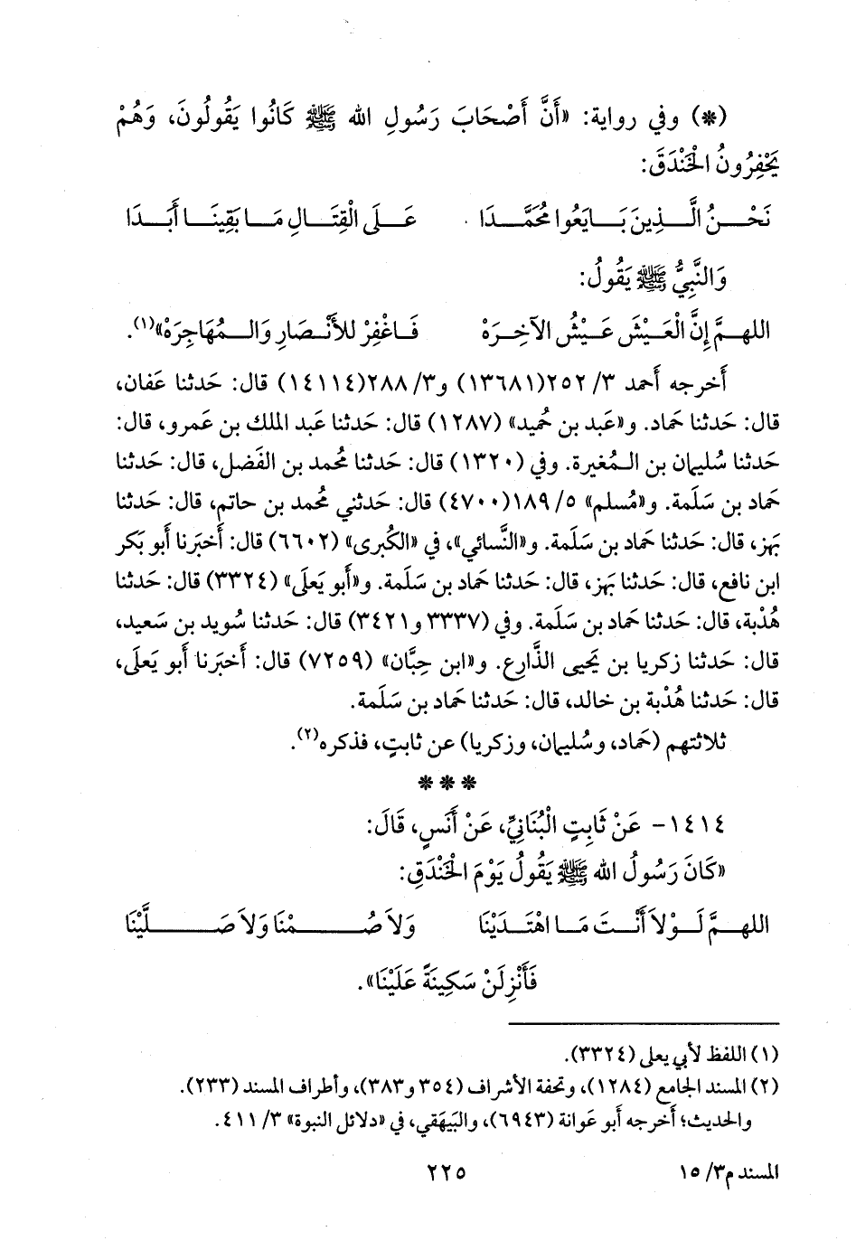 - وفي رواية: «أن أصحاب رسول الله صَلى الله عَليه وسَلم كانوا يقولون، وهم يحفرون الخندق: