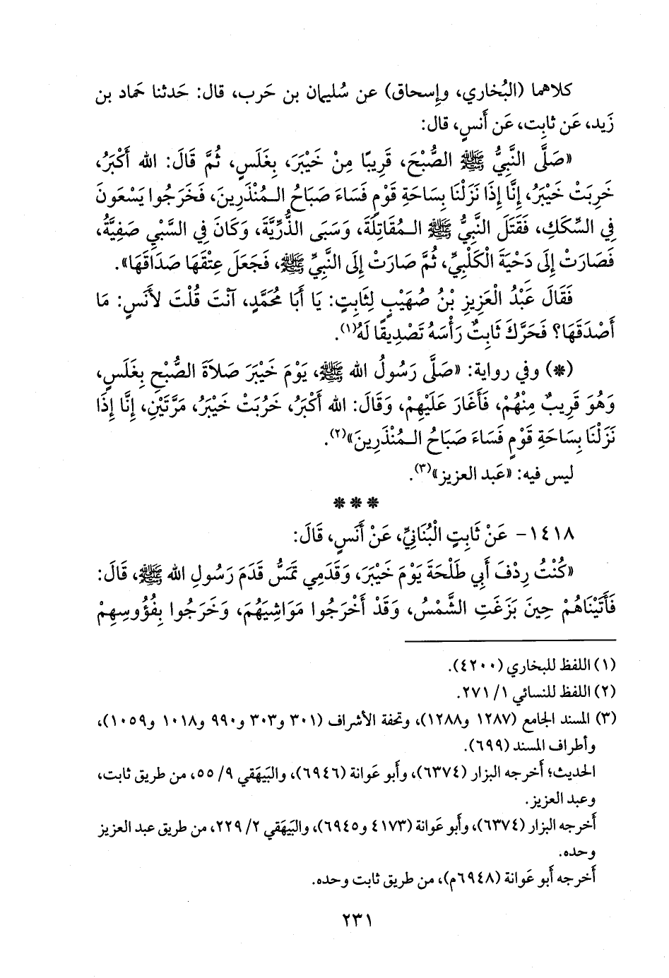 ١٤١٨ - عن ثابت البُنَاني، عن أَنس، قال: