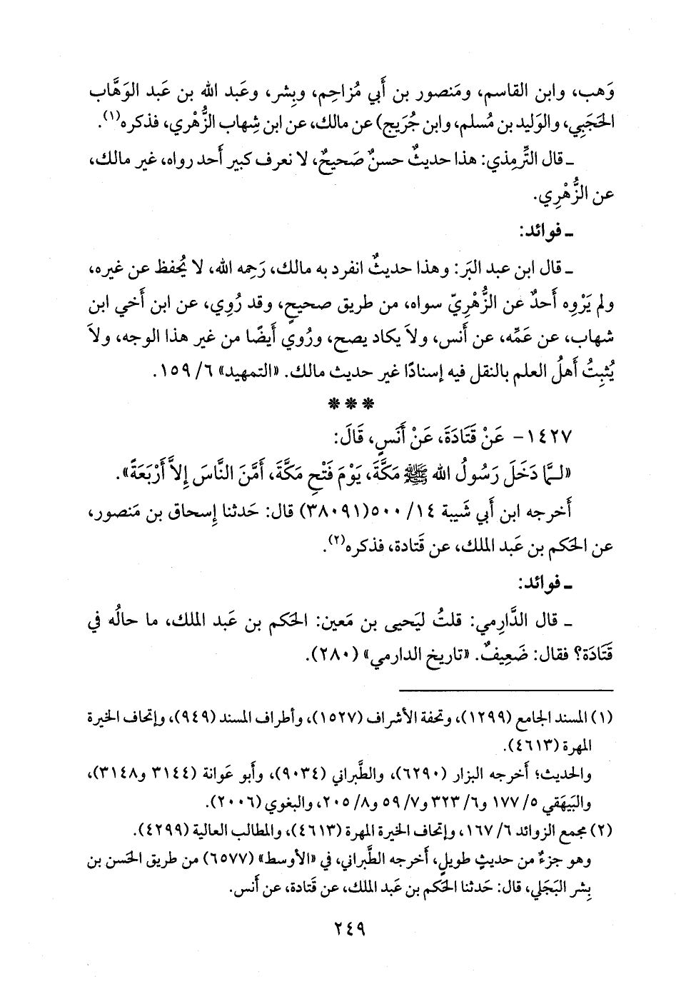 - قال ابن عبد البَر: وهذا حديث انفرد به مالك، رحمه الله، لا يحفظ عن غيره، ولم يروه أحد عن الزُّهْري سواه، من طريق صحيح، وقد روي، عن ابن أخي ابن شهاب، عن عمه، عن أَنس، ولا يكاد يصح، وروي أيضا من غير هذا الوجه، ولا يثبت أهل العلم بالنقل فيه إسنادا غير حديث مالك. «التمهيد» ٦/ ١٥٩.