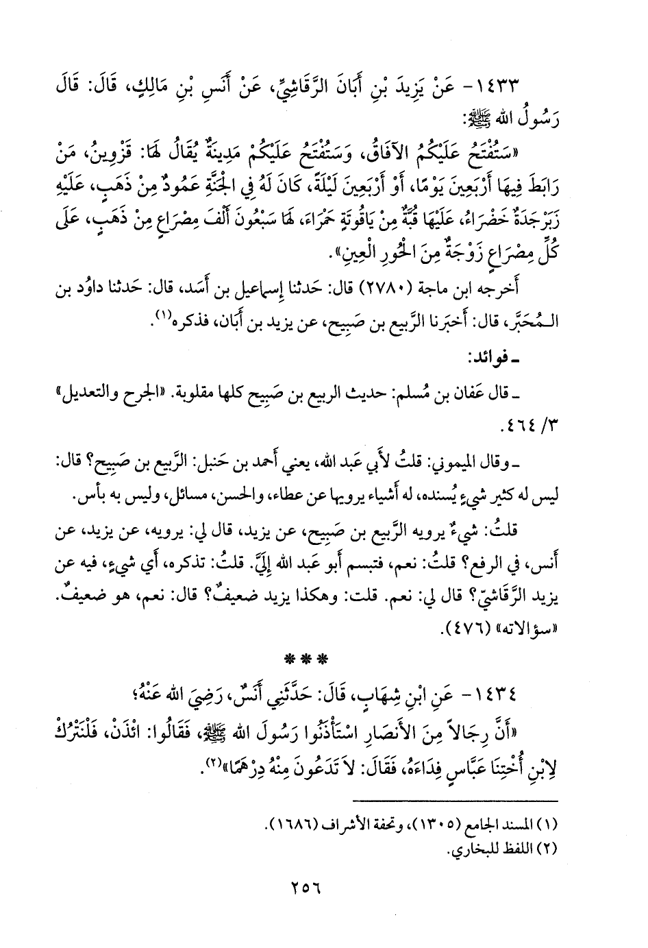 ١٤٣٣ - عن يزيد بن أَبَان الرَّقَاشي، عن أَنس بن مالك، قال: قال رسول الله صَلى الله عَليه وسَلم: