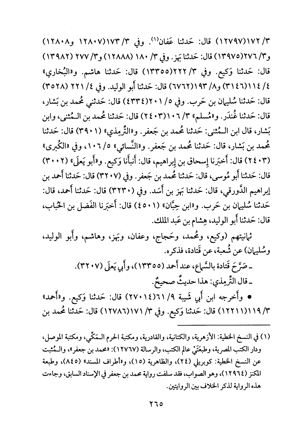 - أخرجه ابن أبي شيبة (٢٧٠١٤) قال: حدثنا وكيع. و «أحمد» (١٢٢١١) قال: حدثنا وكيع. وفي (١٢٧٨٦) قال: حدثنا محمد بن