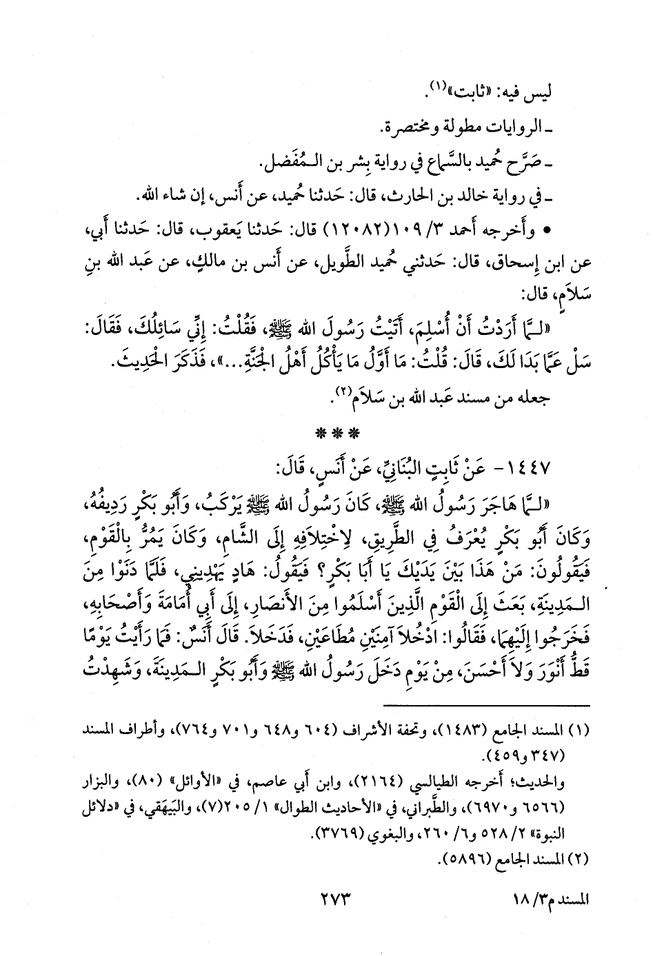 (¬١) المسند الجامع (١٤٨٣)، وتحفة الأشراف (٦٠٤ و ٦٤٨ و ٧٠١ و ٧٦٤)، وأطراف المسند (٣٤٧ و ٤٥٩).