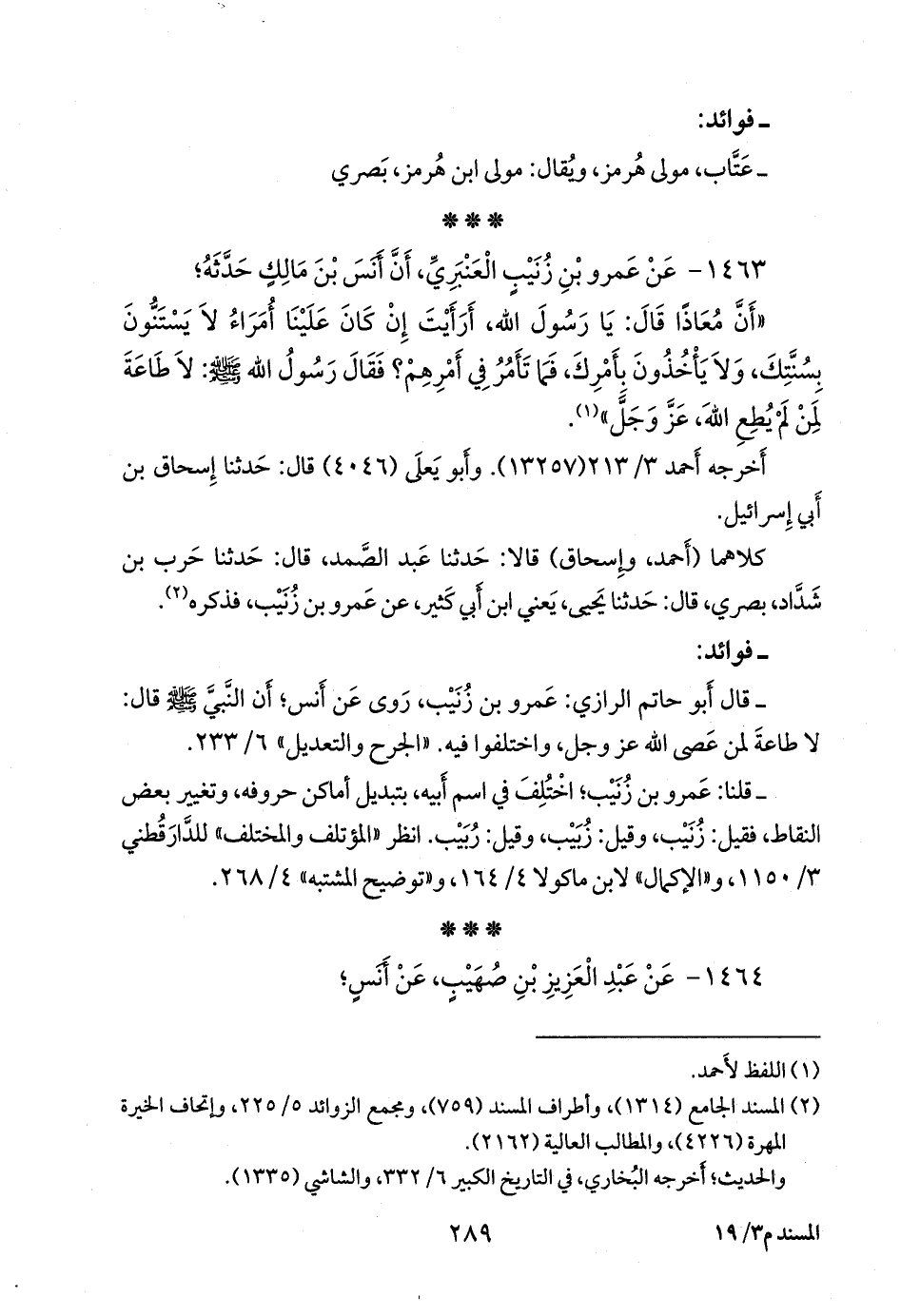 كلاهما (أحمد، وإسحاق) عن عبد الصمد، قال: حدثنا حرب بن شداد، بصري، قال: حدثنا يحيى، يعني ابن أبي كثير، عن عَمرو بن زنيب، فذكره (¬٢).