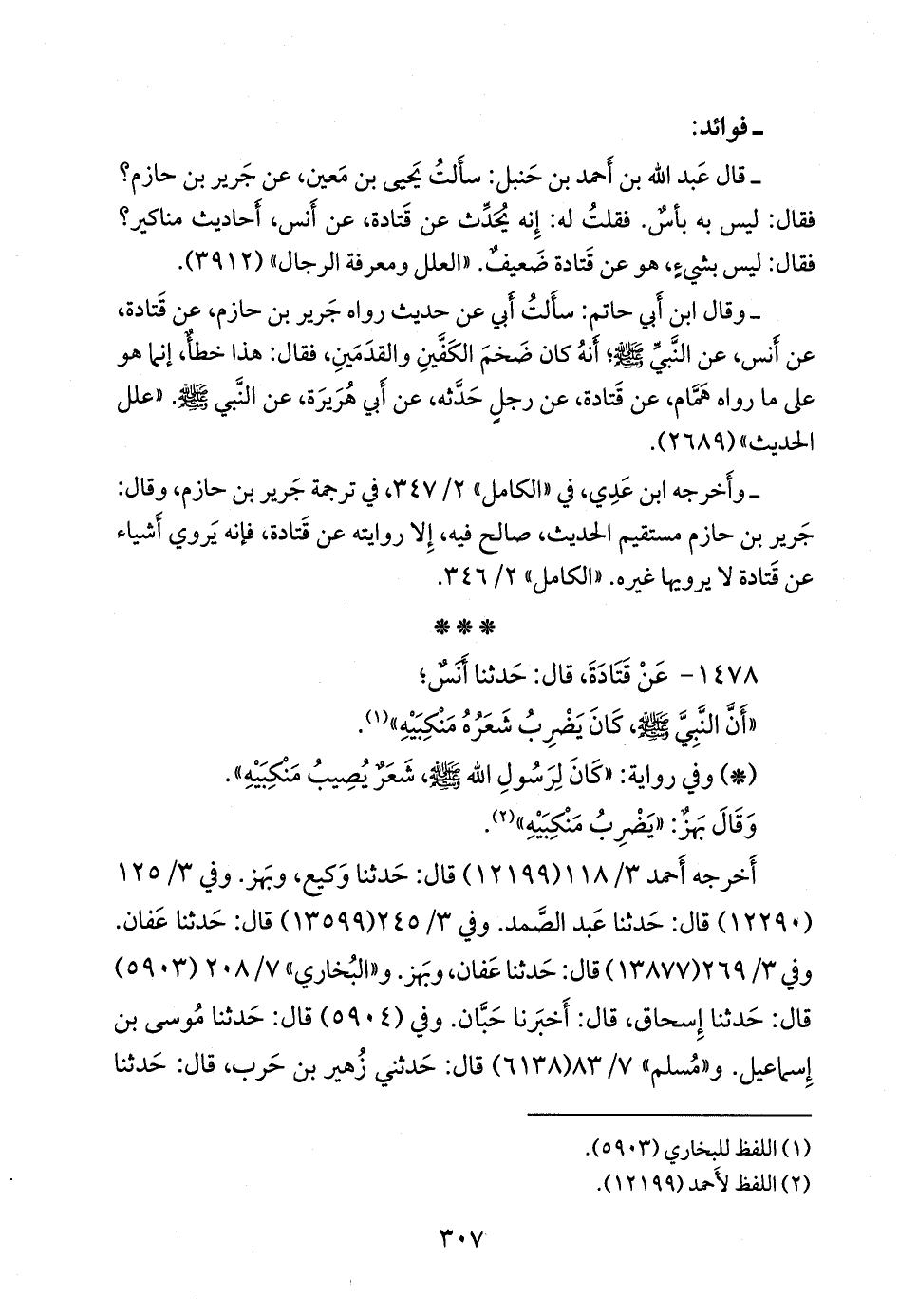 ستتهم (وكيع، وبَهز، وعبد الصمد، وعفان، وحَبَّان بن هلال، وموسى) عن همام بن يحيى، عن قتادة، فذكره (¬٤).