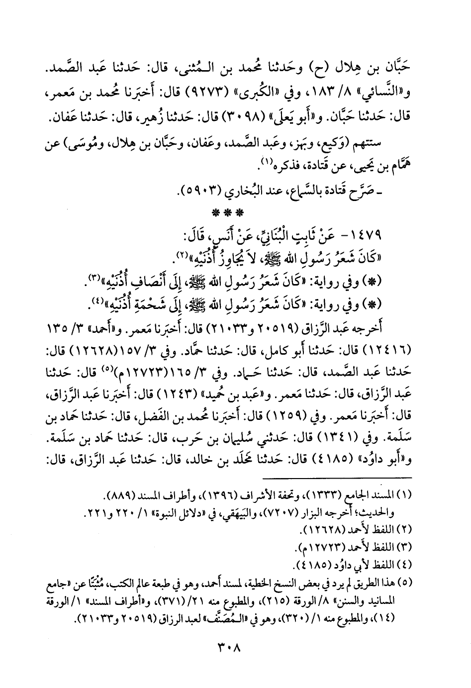 أخرجه عبد الرزاق (٢٠٥١٩ و ٢١٠٣٣) قال: أخبرنا معمر. و «أحمد» ٣/ ١٣٥ (١٢٤١٦) قال: حدثنا أَبو كامل، قال: حدثنا حماد. وفي ٣/ ١٥٧ (١٢٦٢٨) قال: حدثنا عبد الصمد، قال: حدثنا حماد. وفي ٣/ ١٦٥ (١٢٧٢٣ م) (¬٤) قال: حدثنا عبد الرزاق، قال: حدثنا مَعمَر. و «عَبد بن حُميد» (١٢٤٣) قال: أخبرنا عبد الرزاق، قال: أخبرنا مَعمَر. وفي (١٢٥٩) قال: أخبرنا محمد بن الفضل، قال: حدثنا حماد بن سلمة. وفي (١٣٤١) قال: حدثني سليمان بن حرب، قال: حدثنا حماد بن سلمة. و «أَبو داود» (٤١٨٥) قال: حدثنا مخلد بن خالد، قال: حدثنا عبد الرزاق، قال: