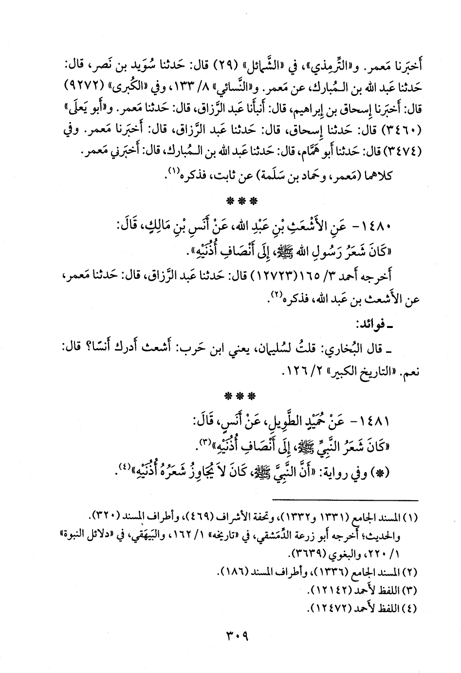 «كان شعر رسول الله صَلى الله عَليه وسَلم إلى أنصاف أذنيه».