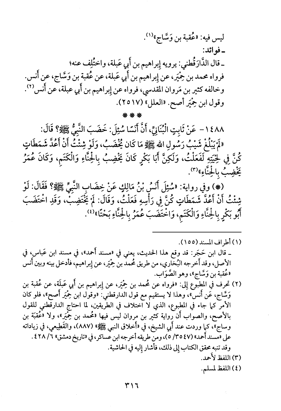 ١٤٨٨ - عن ثابت البُنَاني، أن أنسا سئل: خضب النبي صَلى الله عَليه وسَلم؟ قال: