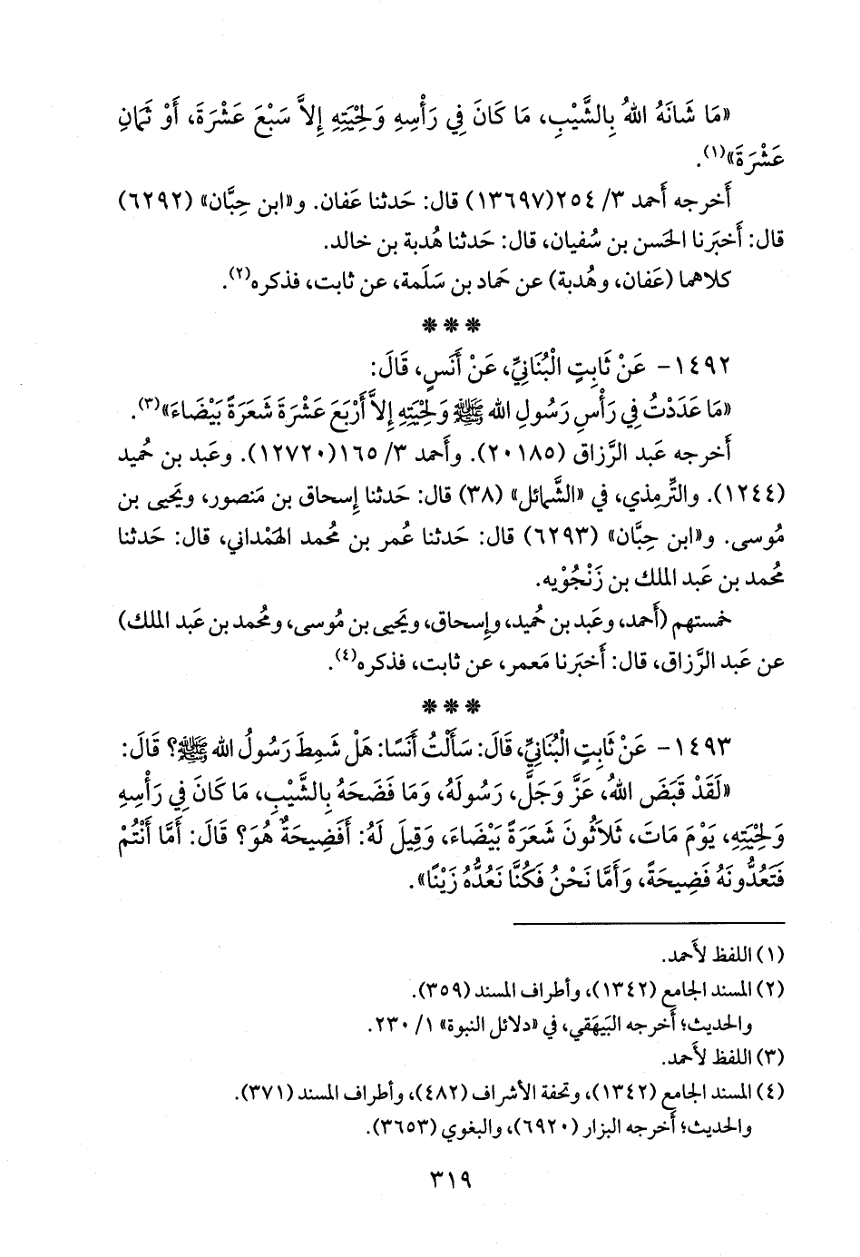 ١٤٩٣ - عن ثابت البُنَاني، قال: سألت أنسا: هل شمط رسول الله صَلى الله عَليه وسَلم؟ قال: