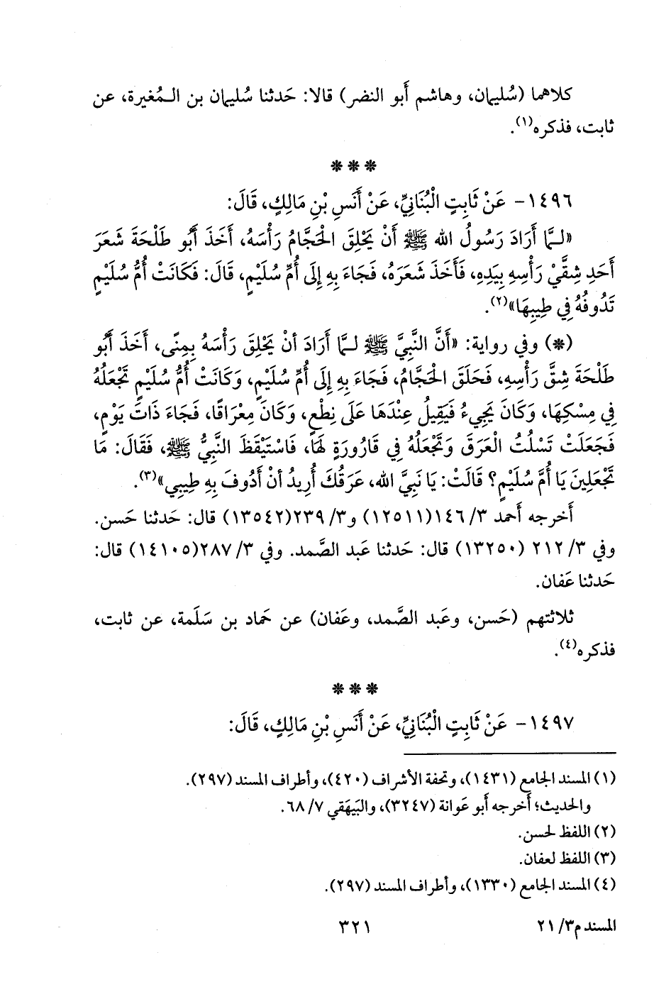 ثلاثتهم (أحمد، وعبد، وزهير) عن هاشم بن القاسم، عن سليمان بن المغيرة، عن ثابت، فذكره (¬٢).