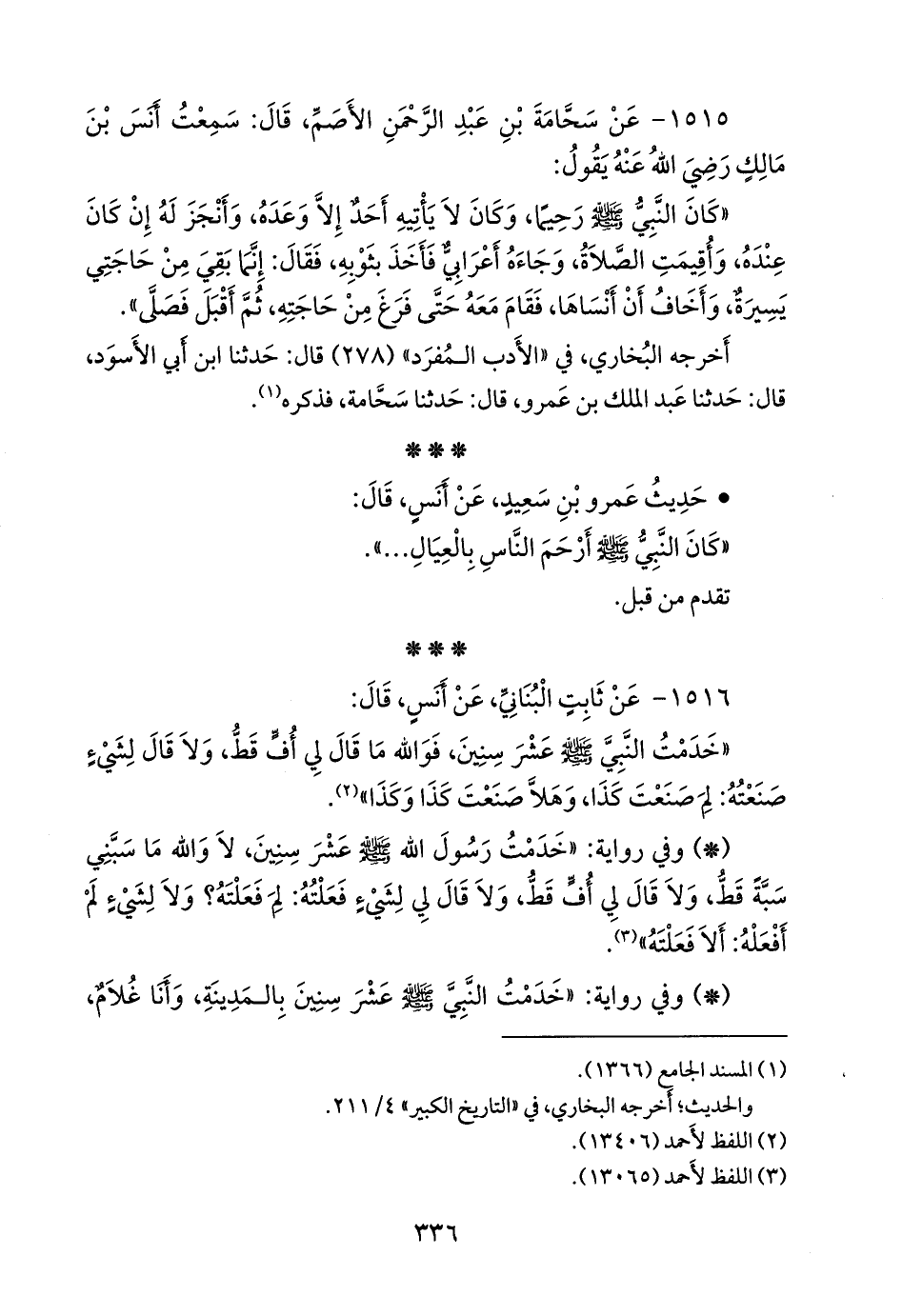 ١٥١٥ - عن سحامة بن عبد الرَّحمَن الأصم، قال: سمعت أَنس بن مالك رضي الله عنه يقول: