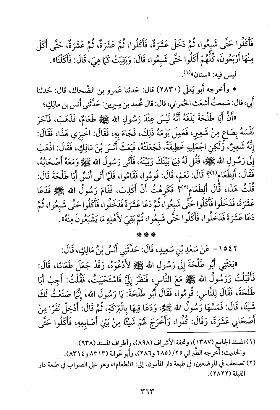 (¬٢) تصحف في الموضعين، في طبعة دار المأمون، إلى: «الطعام»، وهو على الصواب في طبعة دار القبلة (٢٨٢٢).