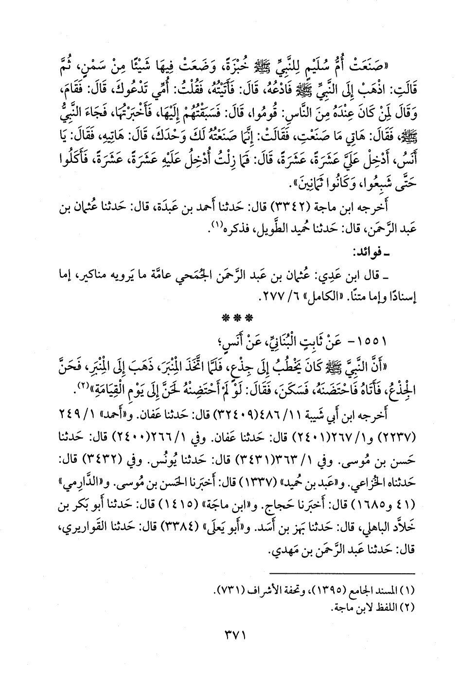 ١٥٥١ - عن ثابت البُنَاني، عن أَنس؛