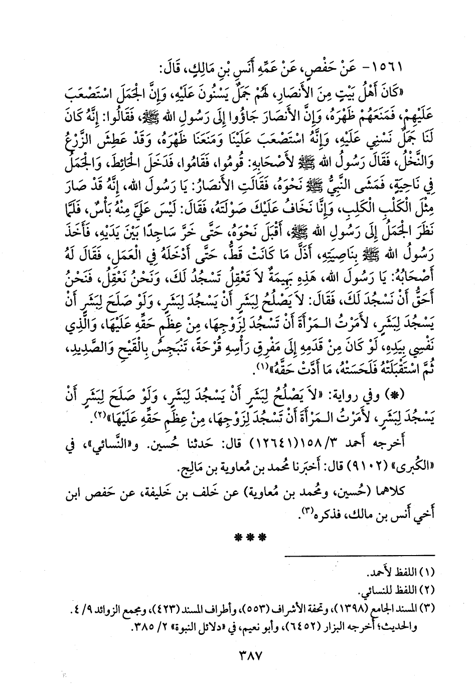 ١٥٦١ - عن حفص، عن عمه أَنس بن مالك، قال: