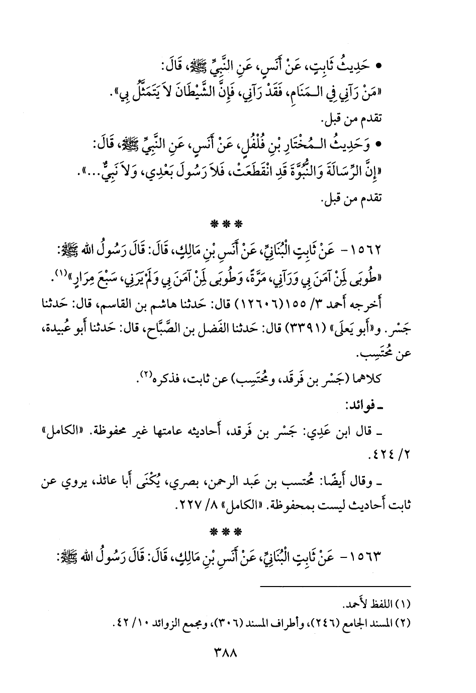 (¬٢) المسند الجامع (٢٤٧)، وأطراف المسند (٣٨٦)، ومَجمَع الزوائد ١٠/ ٦٦.