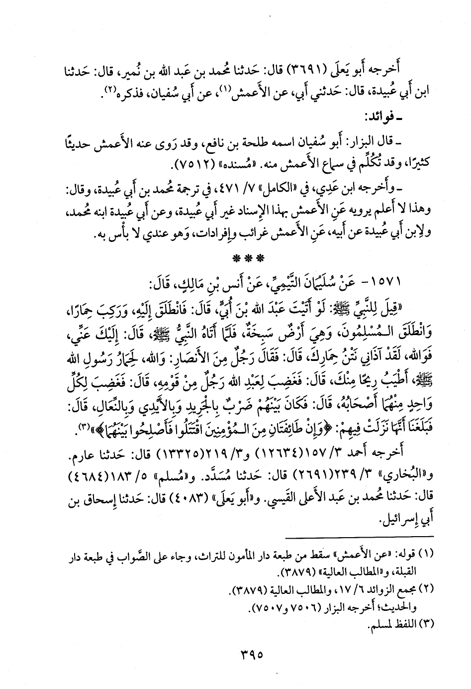 أربعتهم (عارم، ومُسَدَّد، ومحمد، وإسحاق) عن مُعتَمِر بن سليمان، قال: سمعت أبي يحدث، فذكره (¬٢).
