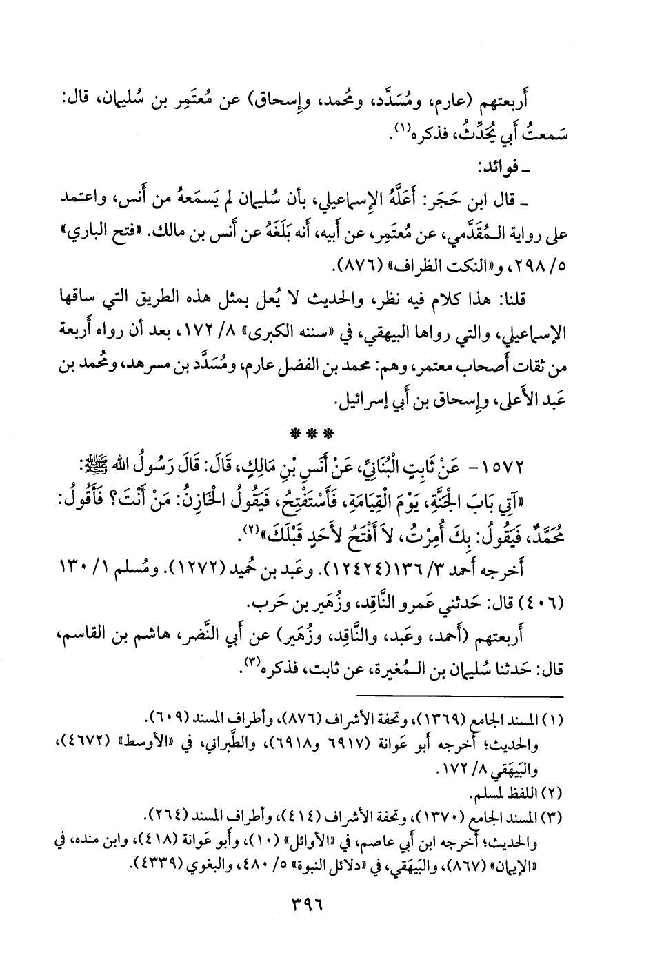 ١٥٧٢ - عن ثابت البُنَاني، عن أَنس بن مالك، قال: قال رسول الله صَلى الله عَليه وسَلم: