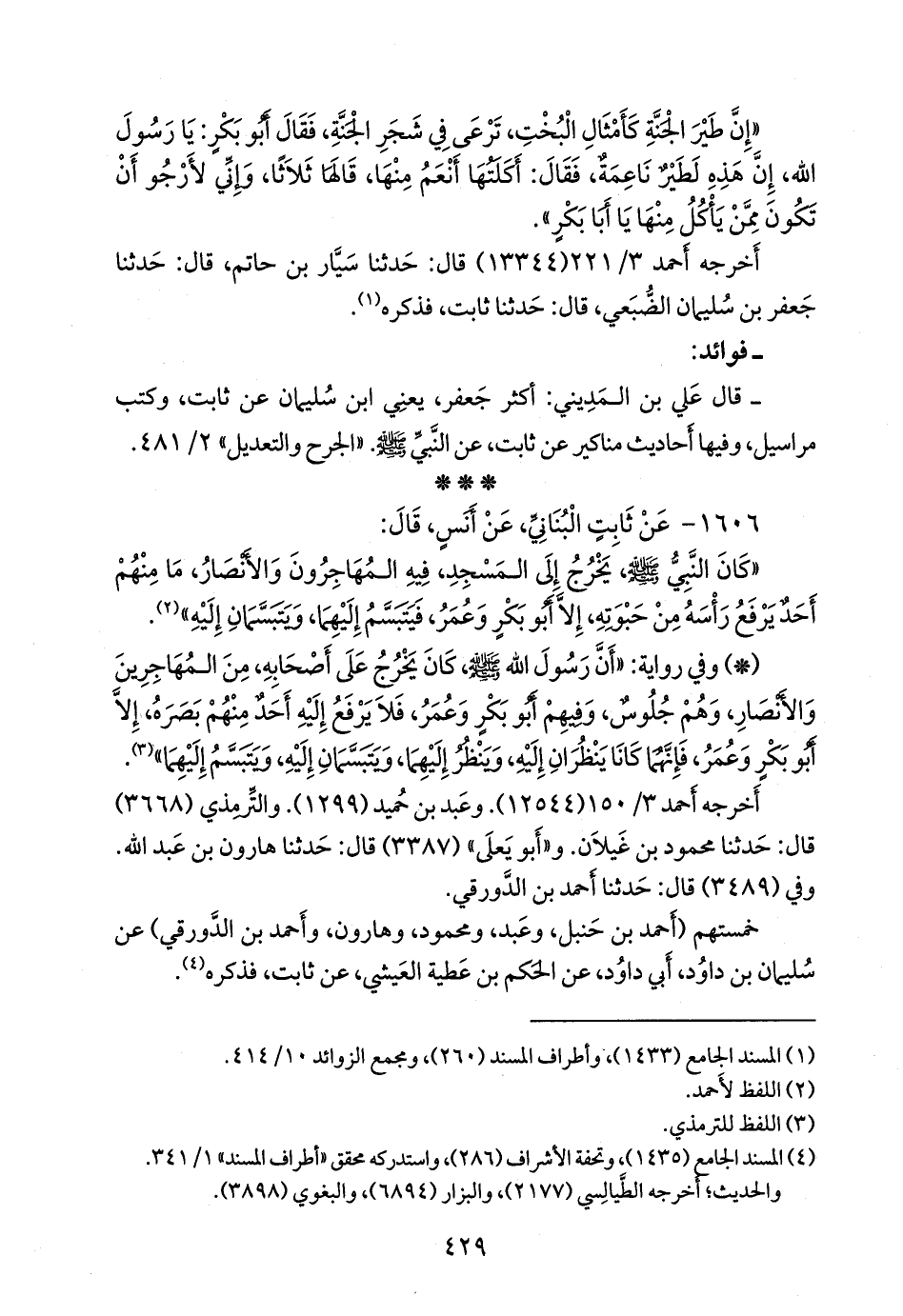 خمستهم (أحمد بن حنبل، وعبد، ومحمود، وهارون، وأحمد بن الدورقي) عن سليمان بن داود أبي داود، عن الحكم بن عطية العيشي، عن ثابت، فذكره (¬٣).