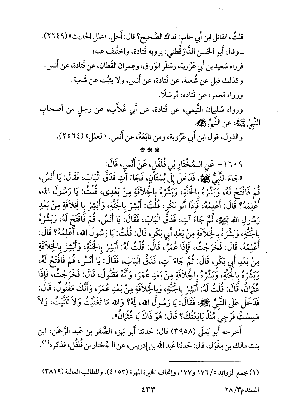 ١٦٠٩ - عن المختار بن فلفل، عن أَنس، قال:
