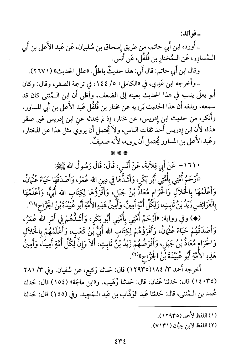١٦١٠ - عن أبي قلابة، عن أَنس، قال: قال رسول الله صَلى الله عَليه وسَلم: