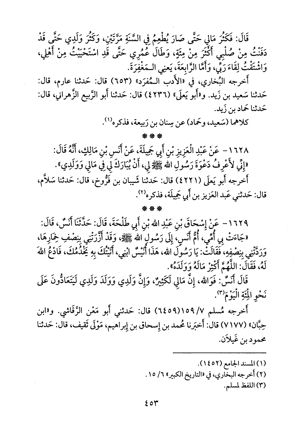 ١٦٢٩ - عن إسحاق بن عبد الله بن أبي طلحة، قال: حدثنا أنس، قال: