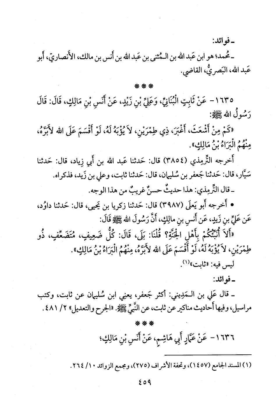 ١٦٣٥ م- عن علي بن زيد، عن أَنس بن مالك، أن رسول الله صَلى الله عَليه وسَلم قال:
