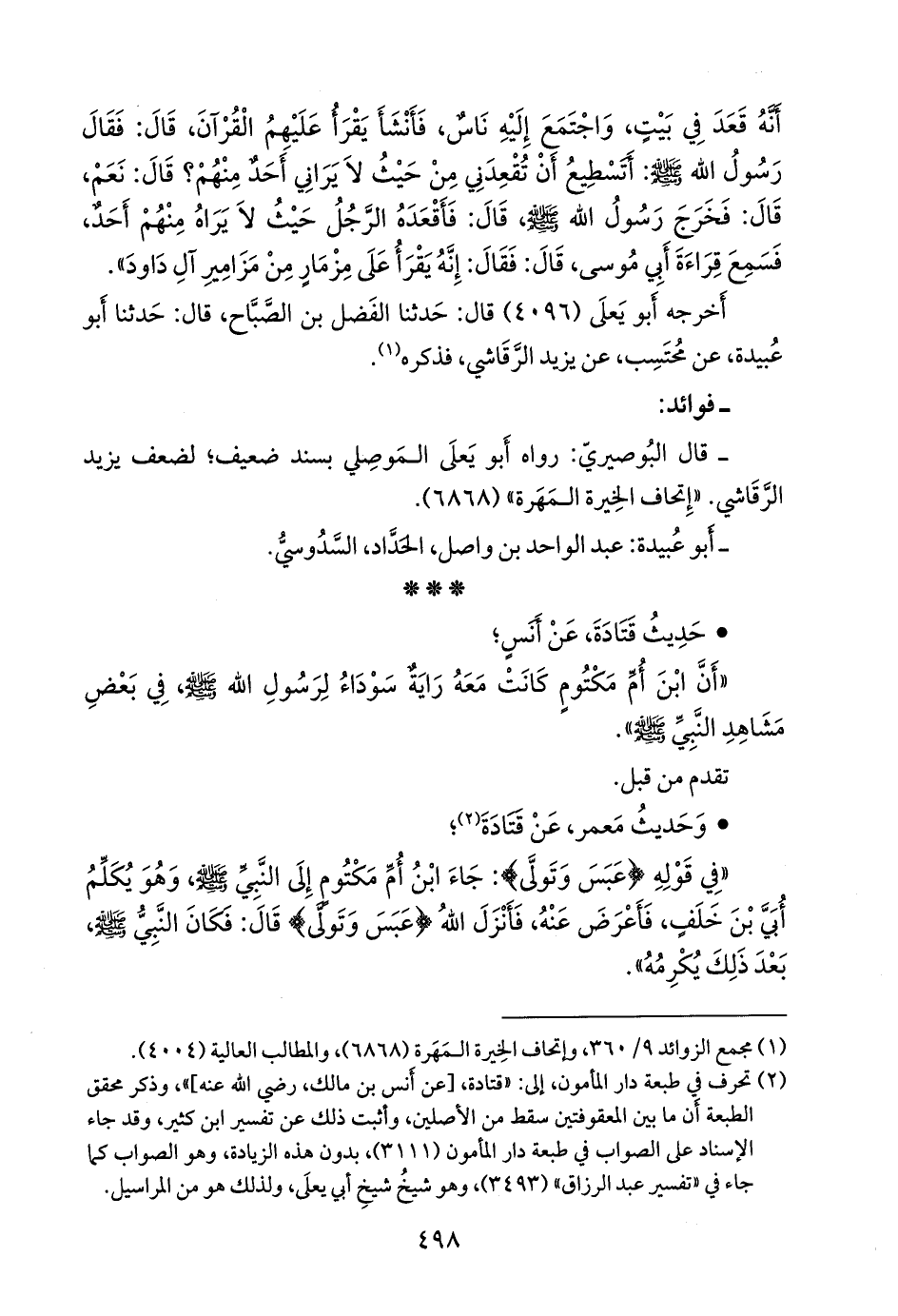 (¬١) تحرف في طبعة دار المأمون لمسند أبي يعلى، إلى: «قتادة، [عن أَنس، رضي الله عنه]»، وذكر محقق الطبعة أَن ما بين الحاصرتين سقط من الأصلين، وأثبت ذلك عن تفسير ابن كثير، وقد جاء الإِسناد على الصواب في طبعة دار القِبلة (٣١١١)، و «تفسير عبد الرزاق» (٣٤٩٣)، وهو شيخ شيخ أبي يَعلى، بدون هذه الزيادة، وهذا من مراسيل قتادة، أَما «تفسير ابن كثير» ٨/ ٣١٩، فقد وضع محققه: «عن أَنس» بين قوسين، وقال: تنبيه: ما بين المعقوفين ليس في أَصل مسند أَبي يعلى، وتفسير عبد الرزاق، وهو من النسخ، وأظنه مقحمًا، والله أَعلم، وأَضافها محقق دار المأمون إِستنادا إِلى هذا الإقحام.