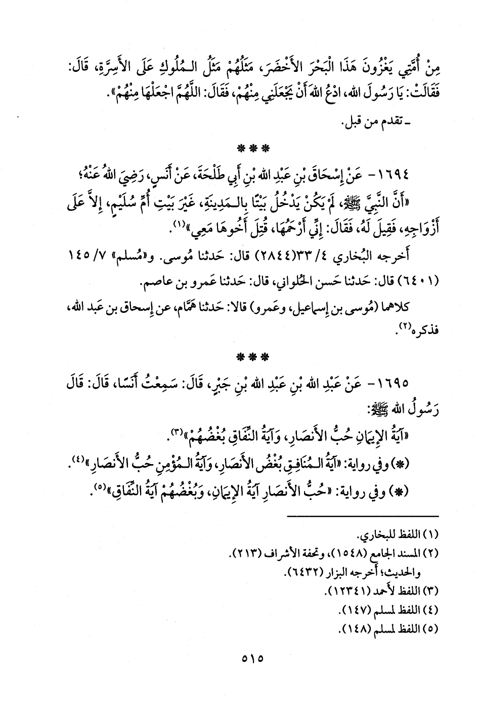 ١٦٩٥ - عن عبد الله بن عبد الله بن جبر، قال: سمعت أَنسًا، قال: قال رسول الله صَلى الله عَليه وسَلم: