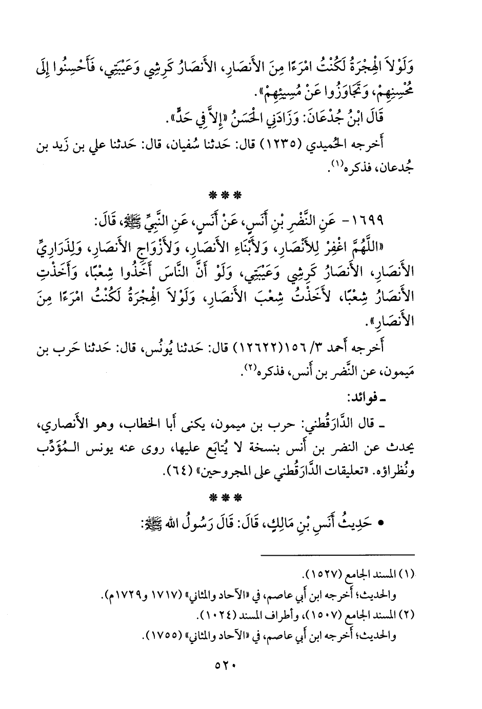 • حديث أَنس بن مالك، قال: قال رسول الله صَلى الله عَليه وسَلم: