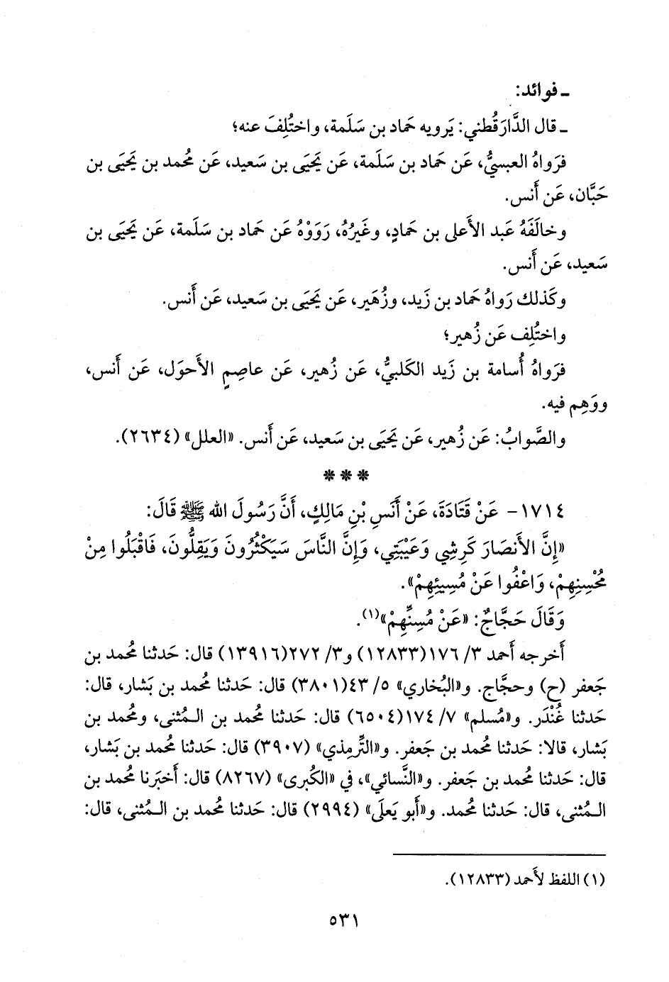 ١٧١٤ - عن قتادة، عن أَنس بن مالك، أن رسول الله صَلى الله عَليه وسَلم قال:
