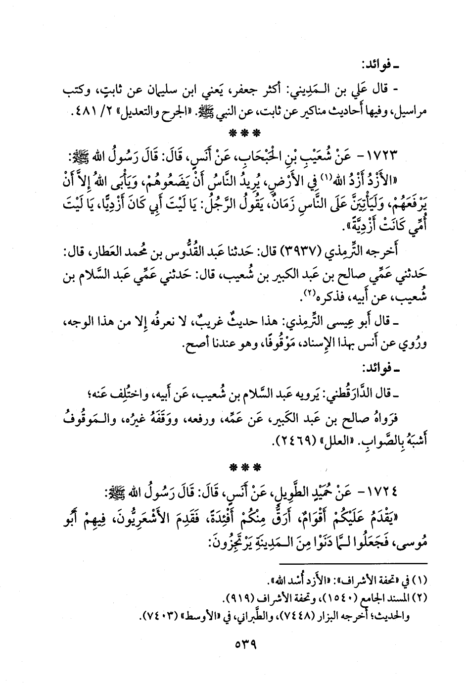 ١٧٢٣ - عن شعيب بن الحَبحاب، عن أَنس، قال: قال رسول الله صَلى الله عَليه وسَلم: