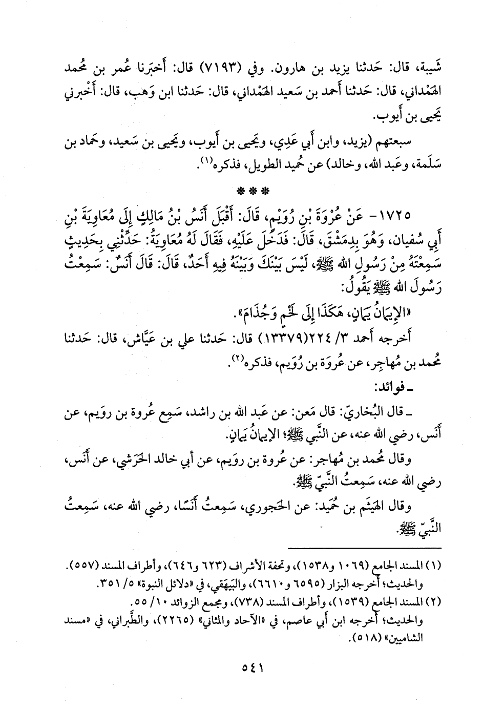 - قال البخاري: قال معن: عن عبد الله بن راشد، سمع عروة بن رويم، عن أَنس، رضي الله عنه، عن النبي صَلى الله عَليه وسَلم؛ الإيمان يمان.