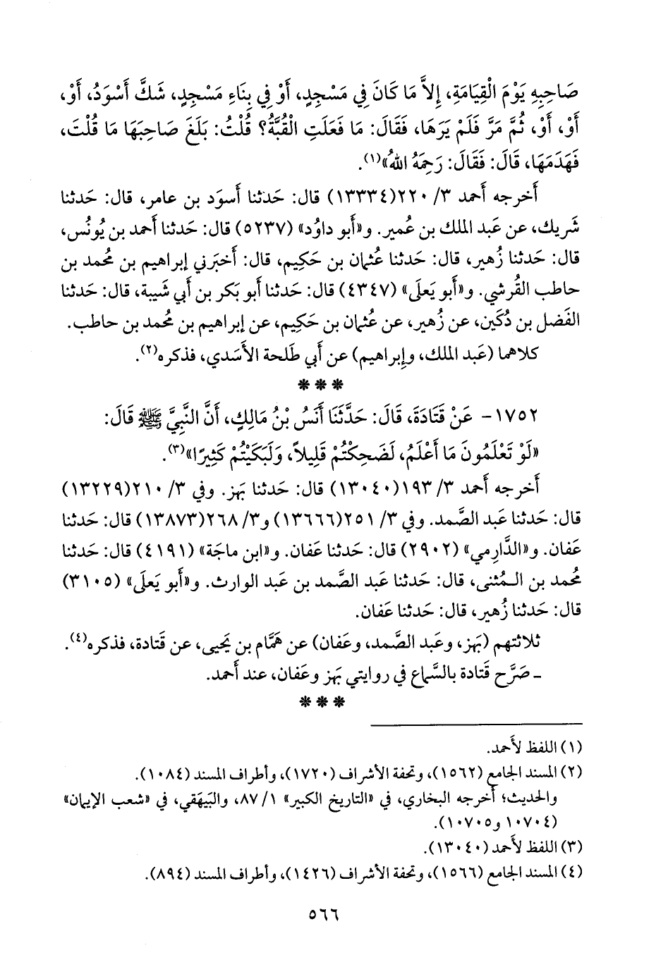 (¬٢) المسند الجامع (١٥٦٦)، وتحفة الأشراف (١٤٢٦)، وأطراف المسند (٨٩٤).
